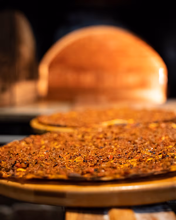 Rolled thin the traditional way for a light, crisp base — never thick or doughy, just the way authentic lahmacun should be.